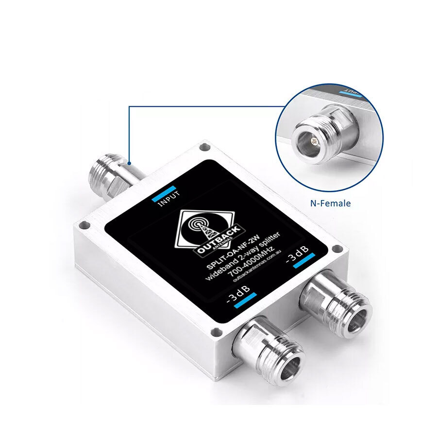 The "STRIPPA" 2 Way Splitter 698~960,1427-4000MHz with N Female Connector is designed to operate on the cellular network with all mobile carriers, regardless of what frequency they operate on. Perfect for indoor mobile repeater applications.