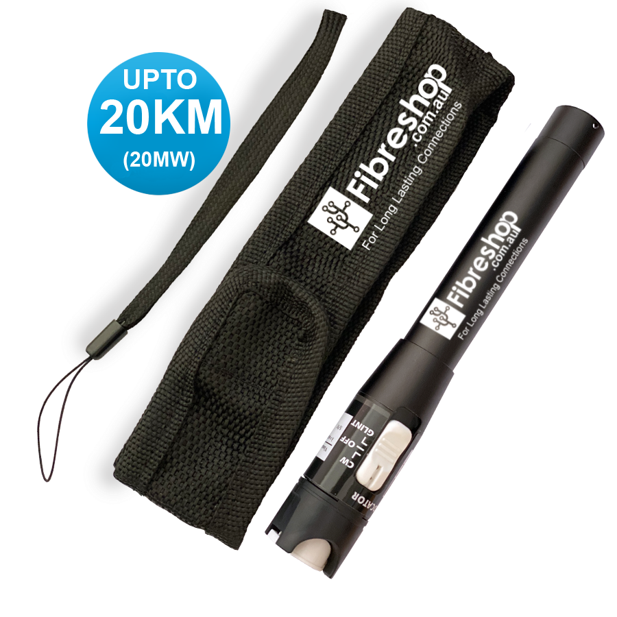 FS-VFL-20MW Pen Shape Visual Fault Locator is a compact but powerful fibre optical cable test tool, with an output power up to 20mW, which can be used to locate sharp bends & breaks in jacked or bare fibre within 20km. It can also be applied to identify the connectors in patch panels and identify the fibres during splicing operation. The choice of a continuous wave output mode for steady fault illumination or a flashing output mode makes for easier fault location.