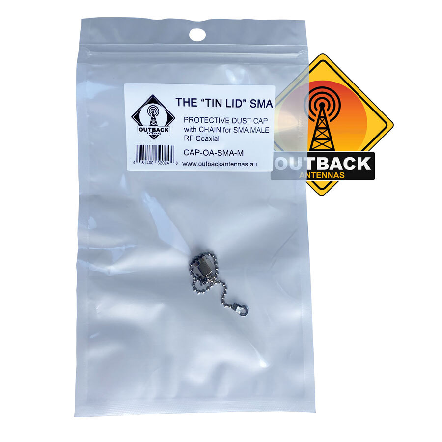 Type: SMA Male Adapter protective dust cap with retainer chain. The "Tin Lid" SMA is designed to fi the SMA Female and RP SMA RF Connectors. Protect and maximise your RF signals by protecting your installations and connectors from the elements maximising the life of the installation.